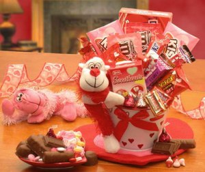 Something else that will last long after the tea has been drunk and the treats have been eaten: a plush toy. Of course, teddy bears are du rigueur (“par for the course,” “standard ammunition for the lovelorn,” etc.) You can be a little offbeat with a plush biker dog (yes, I said “biker dog”) and show your humorous — and a bit wild — side. Or go bananas with a plush monkey. Any of these as part of your gift basket makes the teas, candies, mugs, and treats speak even louder of your love. If your giftees are young in years as well as heart, you’ll surely bring a smile to their faces. Us old fogeys will grin a bit, too.