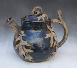 The leaves are pressed in the wet, soft, hand-formed clay, and, since no two leaves are alike, so each piece of her pottery is unique. Tracy makes her pottery even more distinctive with her glazing technique that doesn’t hide the leaf impressions but enhances them. With husband, Craig, working along side her, they produce an array of artistic yet useful items (some, such as the Oak Leaf Ring Teapot, are meant to be decorative).