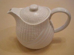 White offers an infinite opportunity for tabletop creativity. It is adaptable to so many styles and is compatible with any other color. My favorite white teapots come in a variety of styles from traditional to contemporary. For those of us who like to collect cups and saucers in a rainbow of colors, a white teapot is perfect. It looks lovely with Grandmother’s Old Country Roses bone china and is equally pleasing with a modern pattern like Spode’s black and white polka dot “Baking Days.”