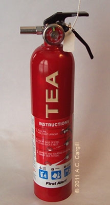Once the tea was steeped, and poured into the teacups prepped with just the right amount of milk and sweetener, we sat back and sipped. In a short while, my tummy was purring contentedly. The fire was out and all was once again peaceful. We now keep our fire extinguishers filled with tea!