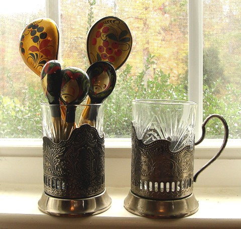Balancing a hot glass in one’s fingers can get a little dicey for the less agile, so the privileged classes created metal holders. The glasses they held were also rather larger than the ones used by the peasantry (hey, they could afford more tea!). Sugar – as much as they liked – was stirred directly into the glass.