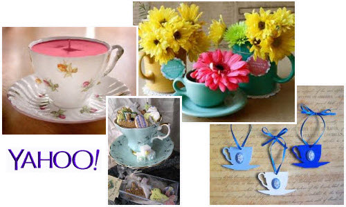 I love the teacup candle idea very much. And putting some flowers (even fake ones) in a teacup can be such a mood enhancer. Of course, teacup-shaped cookies will delight your tea time guests (and you, too). Teacup-shaped tree ornaments are great craft items to make and have ready for the next holiday season ahead. Even just displaying those cups and saucers on a shelf (or two or three, depending on the size of your collection) is a good idea