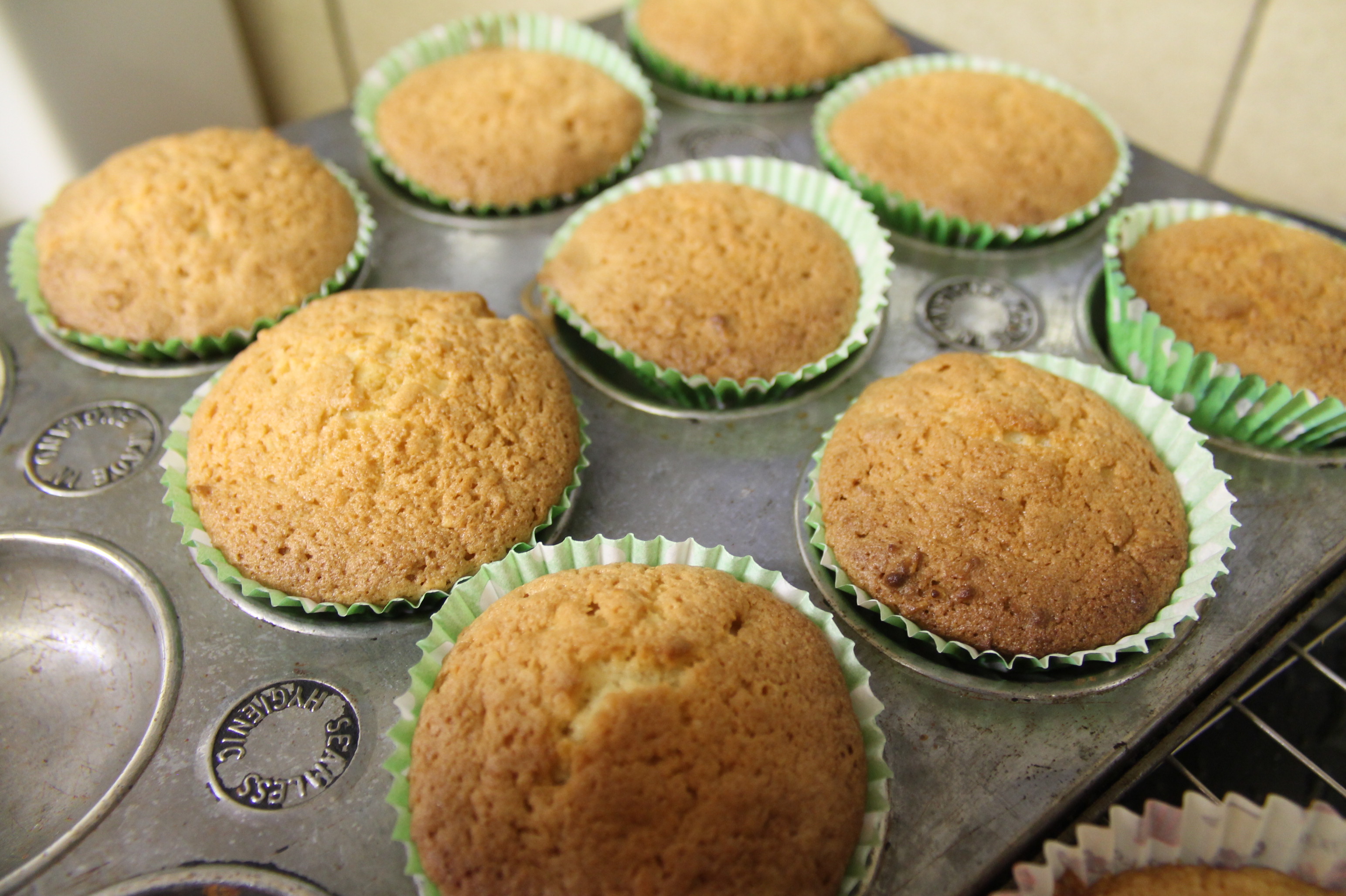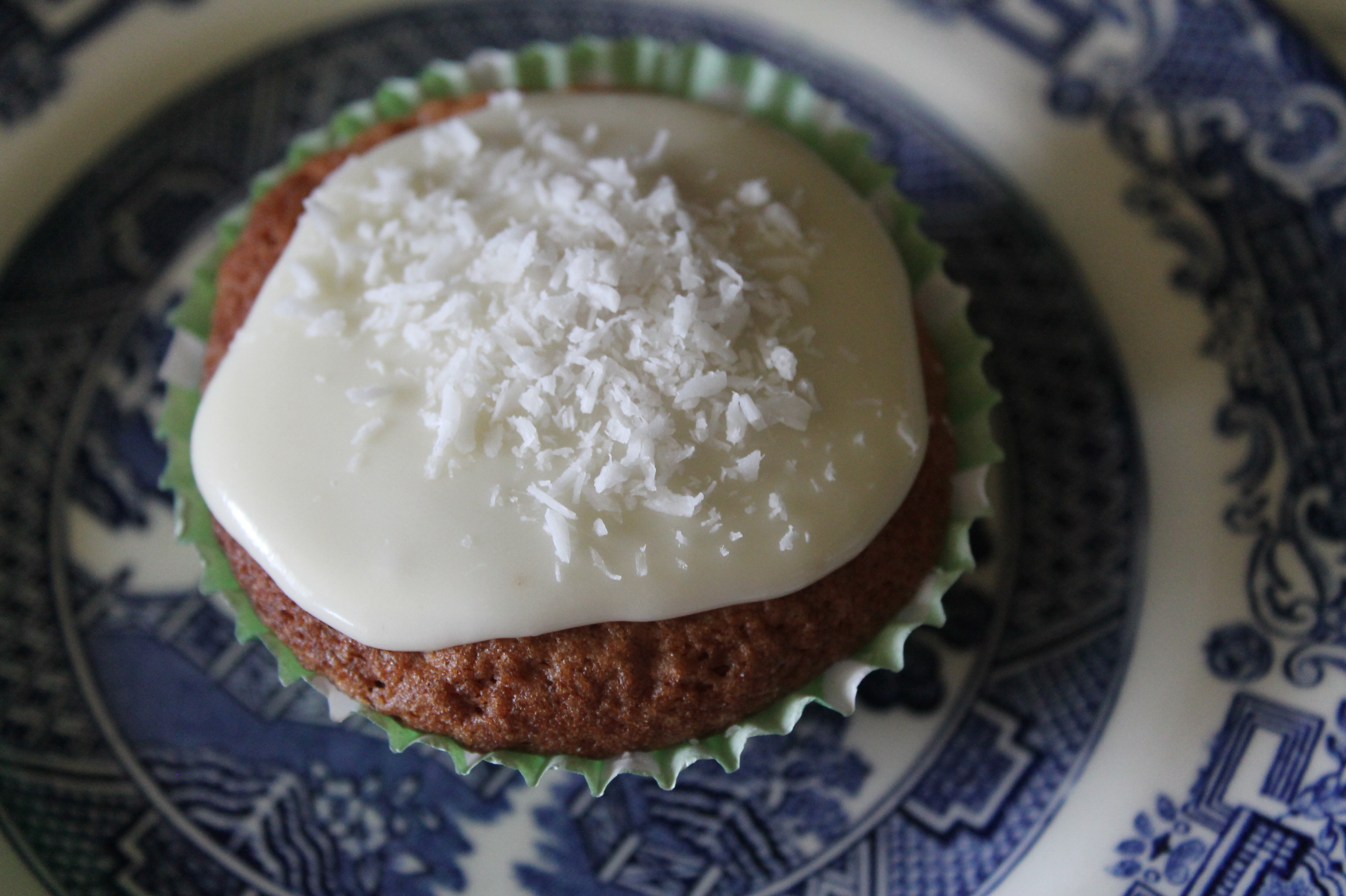 This is the usual creaming method so cream the butter and sugar until light and fluffy then add the eggs one at a time with a spoonful of flour with each egg. Fold in the flour and coconut using a figure of eight motion. Put a spoonful of mixture into paper buns cases which are inside a bun tray and bake for 15-20 mins until firm to the touch.