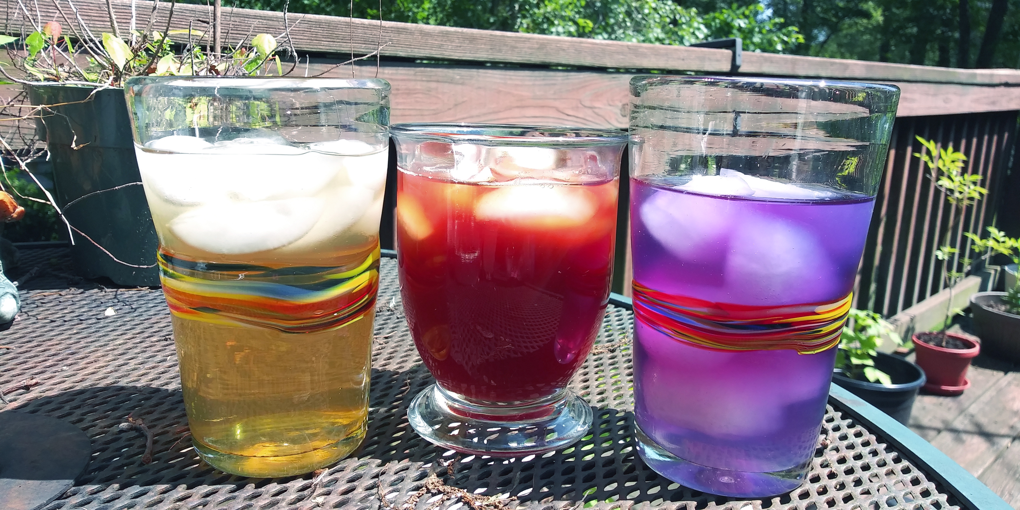 Butterfly Pea Tea with Lemonade Ice Cubes – A tea that is currently trendy, Butterfly Pea is a tea brewed from flowers to create a bright blue colored tea but that’s not the best part. The best part is when you add lemon or citrus. It turns the tea purple! It’s definitely worth watching the astonished faces as the tea changes color. Another added bonus to this is that the lemonade doesn’t water the tea down like regular ice cubes.